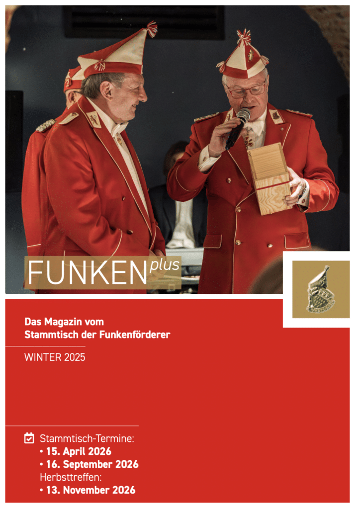 Die Roten Funken sind nicht nur ein weltbekannter Karnevalsverein, sie sind auch ein gemeinnütziger Verein zur Förderung des traditionellen Brauchtums mit vielfältigen sozialen Aufgaben und Pflichten. Die Umsetzung dieser Vereinsziele und der Erhalt funkentypischer Vereinsstrukturen erfordert ein immensen finanziellen Aufwand. Zur besseren finanziellen Ausstattung der Roten Funken wurde daher im Jahre 1988 der Stammtisch der Funkenförderer gegründet. Wirtschaftlich und gesellschaftlich kompetenten Damen und Herren wurde mit dem Stammtisch die Möglichkeit geboten, in besonderer Weise am Vereinsleben der Roten Funken teilnehmen und ihre Verbundenheit durch ihre wirtschaftliche Unterstützung zum Ausdruck bringen zu können.